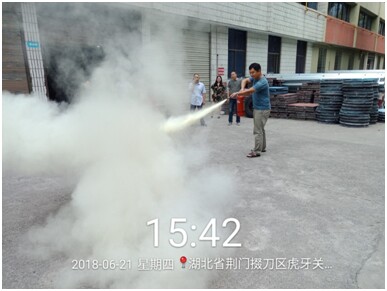 培訓(xùn)會(huì)現(xiàn)場(chǎng)首先講解了物資公司消防應(yīng)急預(yù)案、滅火器和消防栓的使用方法。隨后全體人員分三隊(duì)進(jìn)行了滅火器實(shí)戰(zhàn)近距離滅火及單甩水帶消防滅火基本科目演練比武?;顒?dòng)中,大家嚴(yán)正以待,積極響應(yīng),聽(tīng)到指令后,嚴(yán)格按預(yù)案程序執(zhí)行,全體人員沉著冷靜,不慌不亂,反應(yīng)敏捷,出色的完成了預(yù)定方案。