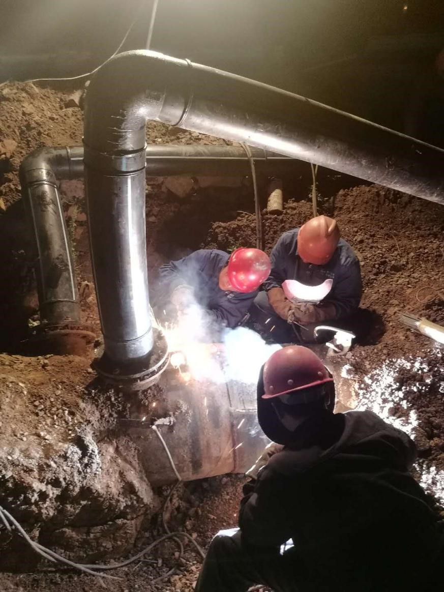 3月21日晚10時(shí),荊門(mén)市給排水安裝工程公司對(duì)荊石線(xiàn)供水管道2處臨時(shí)管道進(jìn)行拆除,并順利進(jìn)行DN600主管道碰頭施工。經(jīng)過(guò)施工人員的連夜搶修,次日凌晨5點(diǎn)4處DN600主管碰頭全部施工完畢,比原計(jì)劃提前3個(gè)小時(shí)完成任務(wù)。為不影響荊石線(xiàn)沿線(xiàn)所有居民及工業(yè)用水,施工安排在夜間進(jìn)行。
