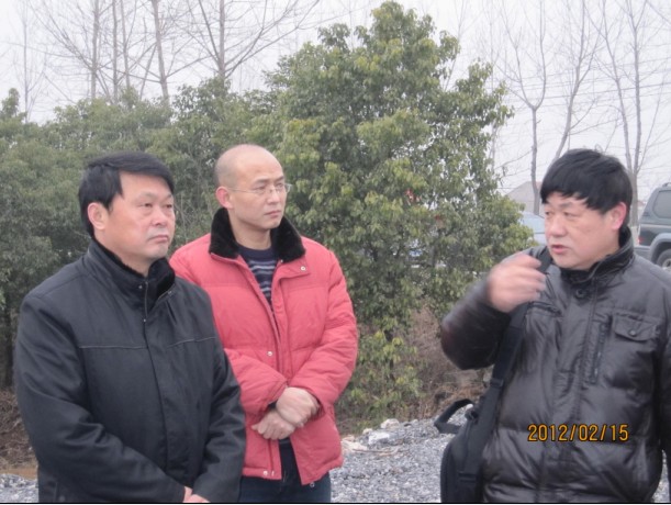 荊門市供水總公司總經(jīng)理陳衛(wèi)國(左一)、黨委書記陳永根(左二)到華能荊門熱電聯(lián)產(chǎn)工程工地,聽取該項目負責人介紹工程建設前期用水需求。
