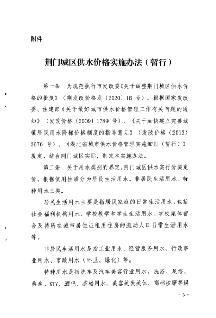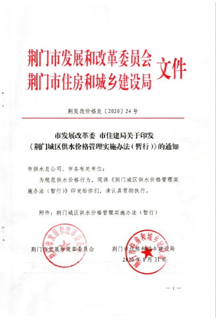 荊門城區(qū)供水價格批復(fù)和管理實施辦法