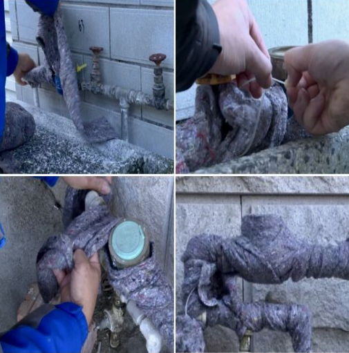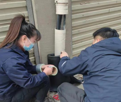 集團(tuán)及時(shí)更新匯總表務(wù)相關(guān)信息,安排專人對(duì)容易上凍或保溫材料缺失的裸露管道、高層小區(qū)管道井上下隔層空隙處加塞保溫棉,防止因樓層串風(fēng)或漏水造成冰凍的損失。同時(shí),我們?cè)跇堑来皯簟⑾篱T(mén)等設(shè)施處張貼“隨手關(guān)閉”提示語(yǔ),提醒用戶養(yǎng)成隨手關(guān)門(mén)窗的習(xí)慣,進(jìn)一步預(yù)防冰凍情況發(fā)生。
