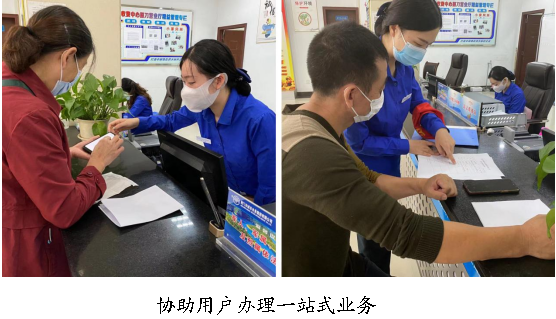 收費(fèi)中心6名黨員佩戴黨徽,在各自崗位上帶頭做好服務(wù)。集團(tuán)各營業(yè)廳均設(shè)置“黨員示范崗”和 “學(xué)雷鋒志愿服務(wù)崗”,配備緊急醫(yī)用藥品和應(yīng)急物資,以備用戶不時之需。志愿者們配好綬帶上崗,主動回復(fù)業(yè)務(wù)咨詢,做好答疑解惑,貼心為困難老人代辦業(yè)務(wù),贏得用戶一致好評。