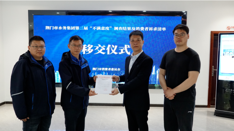 3月10日下午,在市消委辦公樓舉行第二屆“不滿意度調查”結果及消費者訴求清單交接儀式,市消費者委員會秘書長黃波,副秘書長熊志強,市水務集團黨委副書記、總經理王小鋒出席儀式,第三方調查小組和媒體代表作現場見證。