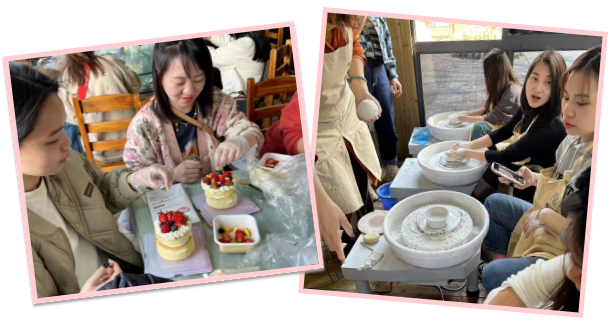 中國文化博大精深,陶藝制作也是由來已久。老師帶領大家了解陶瓷文化,感受陶瓷魅力,介紹陶瓷發(fā)展與成就、講解陶瓷在生活中的運用。女同胞們結群組隊,一起感受制作陶藝的樂趣。