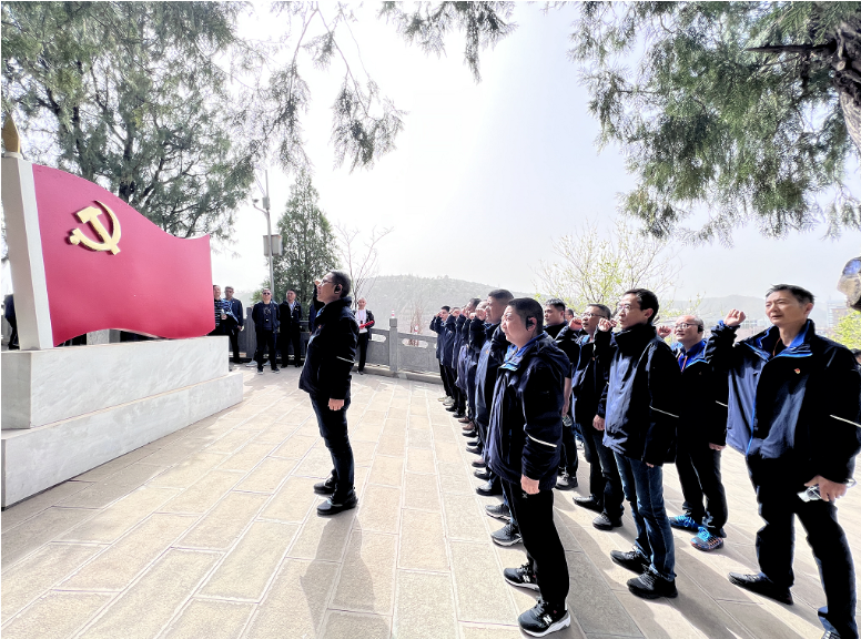 寶塔山頂,集團(tuán)黨委委員、紀(jì)委書記劉高軼帶領(lǐng)大家重溫入黨誓詞,牢記初心使命。