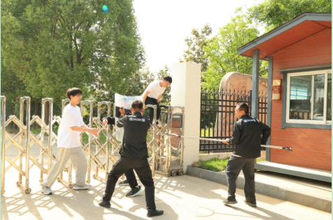 演練前,民警在現(xiàn)場示范了鋼叉、盾牌、警棍等防護器械的組合使用方式。隨后,按計劃開展演練。二水廠一名工作人員模擬“非法闖入可疑人員”,翻越廠區(qū)大門進入生產區(qū),安保人員發(fā)現(xiàn)異常立即啟動應急預案,組織人員趕赴現(xiàn)場的同時請求警力支援,最終合力將其制服,并交由警察帶離現(xiàn)場。
