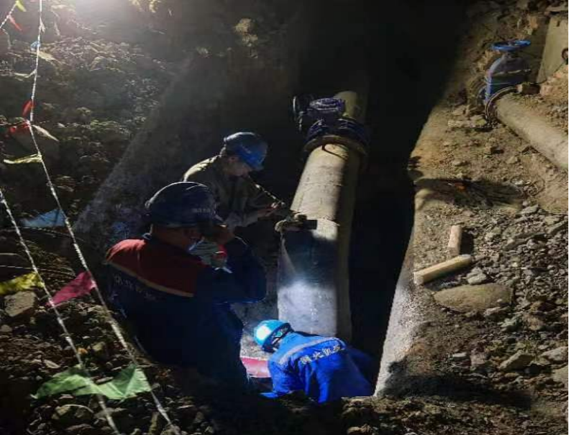 24日晚22時(shí)開(kāi)始停水施工,工作人員在作業(yè)坑內(nèi)各司其職,排水、切割、加裝管夾、安裝三通、加裝閥門……工作現(xiàn)場(chǎng)緊鑼密鼓,人機(jī)作業(yè)井井有條,經(jīng)過(guò)5小時(shí)連續(xù)施工,圓滿完成碰頭施工,比原計(jì)劃提前3小時(shí)通水。