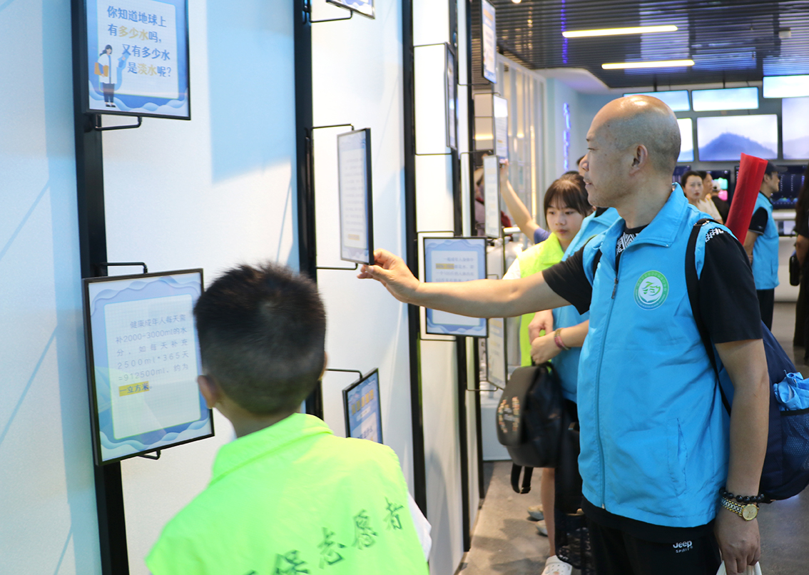 圖為環(huán)保志愿者參觀水務集團智慧展廳