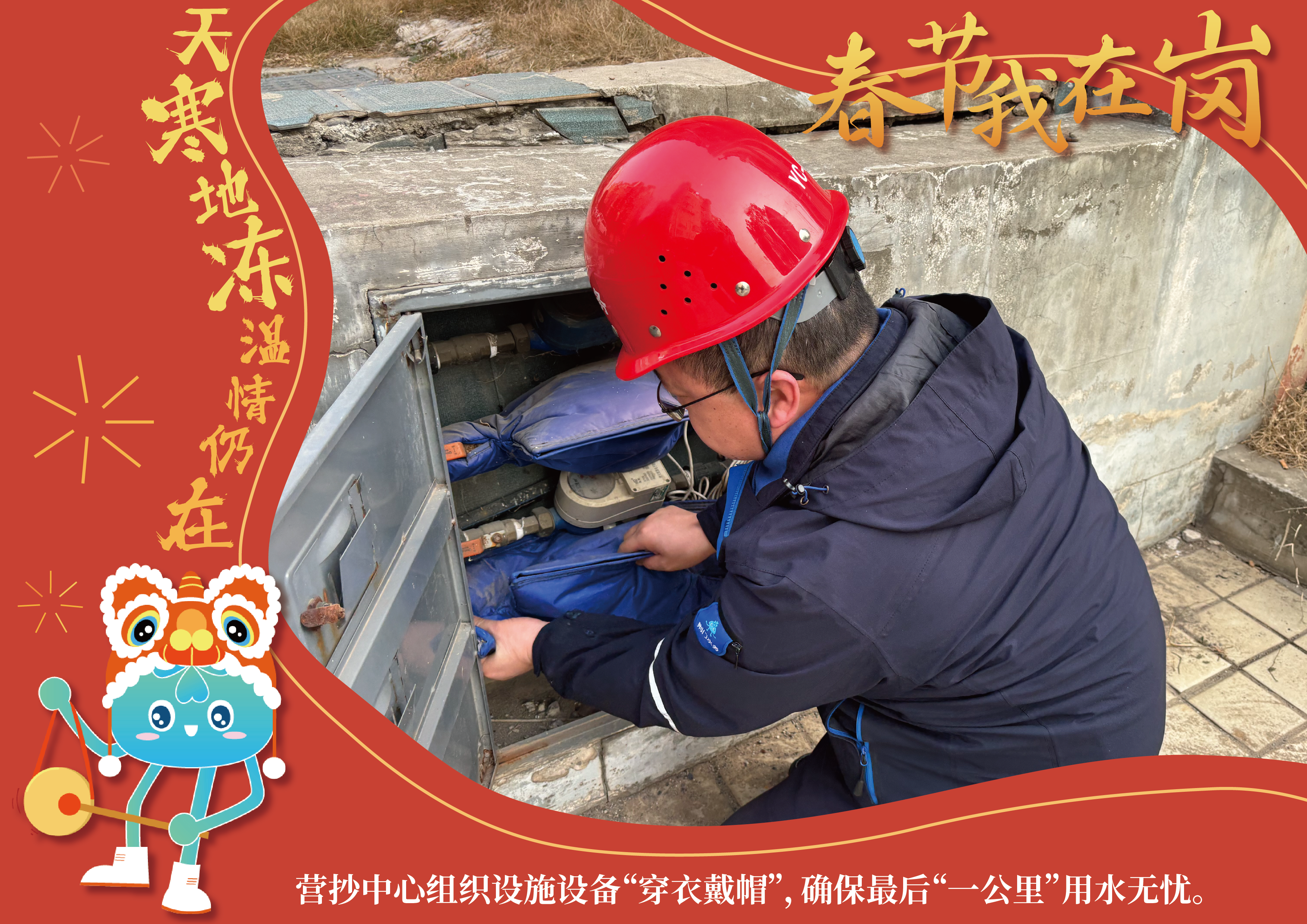 春節(jié)期間,在崗值守的水務鐵軍們將堅持用戶至上服務宗旨,默默守候在城市的各個角落,陪伴廣大市民用戶歡度新春佳節(jié)。