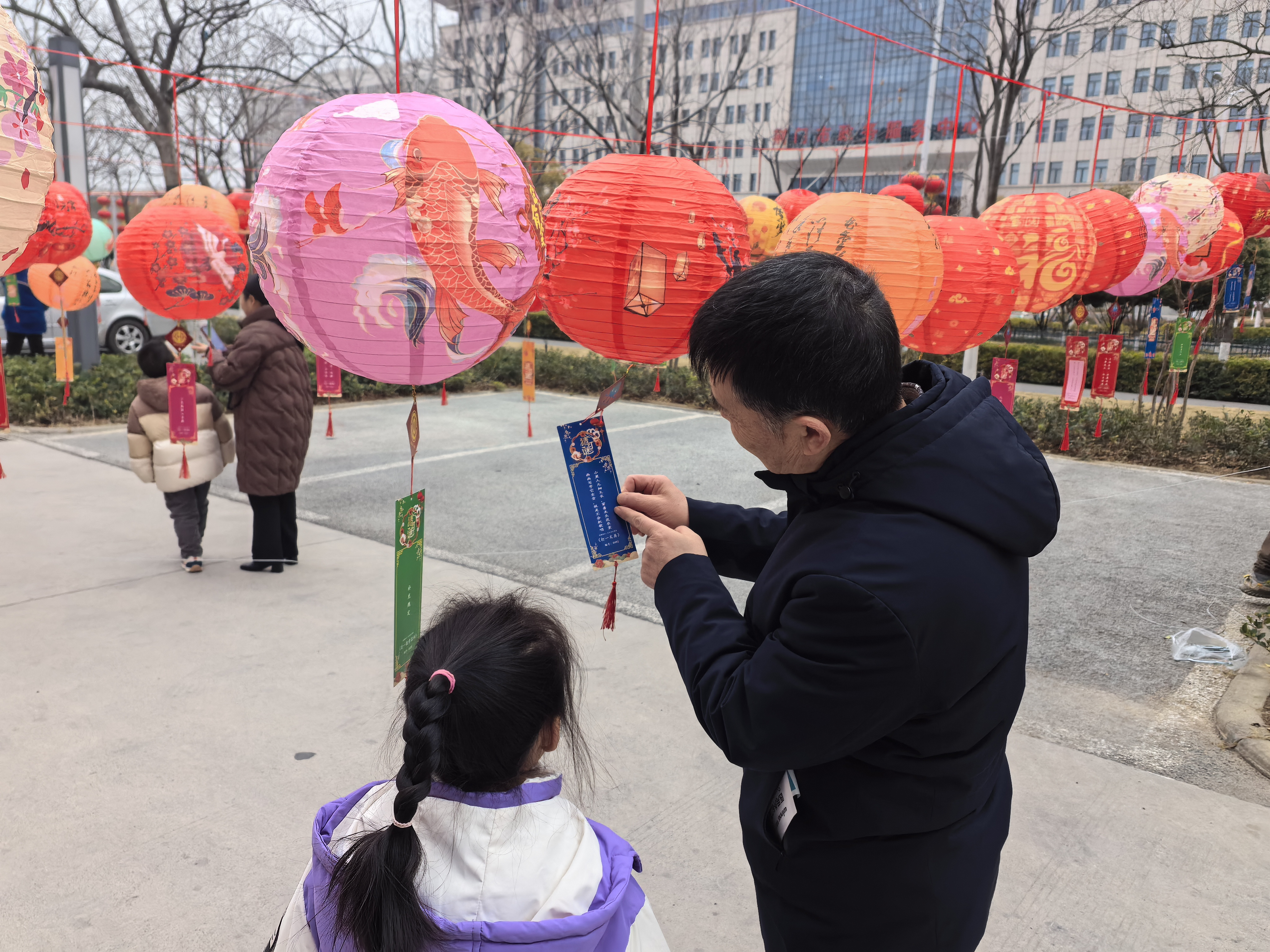 活動(dòng)現(xiàn)場(chǎng),燈籠高懸,五彩絢麗,宛如繁星點(diǎn)綴。每個(gè)燈籠下,精心設(shè)計(jì)的燈謎隨風(fēng)輕搖,內(nèi)容涵蓋歷史文化、生活常識(shí)、成語(yǔ)典故以及水務(wù)知識(shí)等多個(gè)領(lǐng)域,兼顧趣味與知識(shí),吸引了眾多市民駐足參與。大家或低頭沉思,或相互討論,現(xiàn)場(chǎng)歡聲笑語(yǔ)不斷,洋溢著濃濃的節(jié)日氛圍。