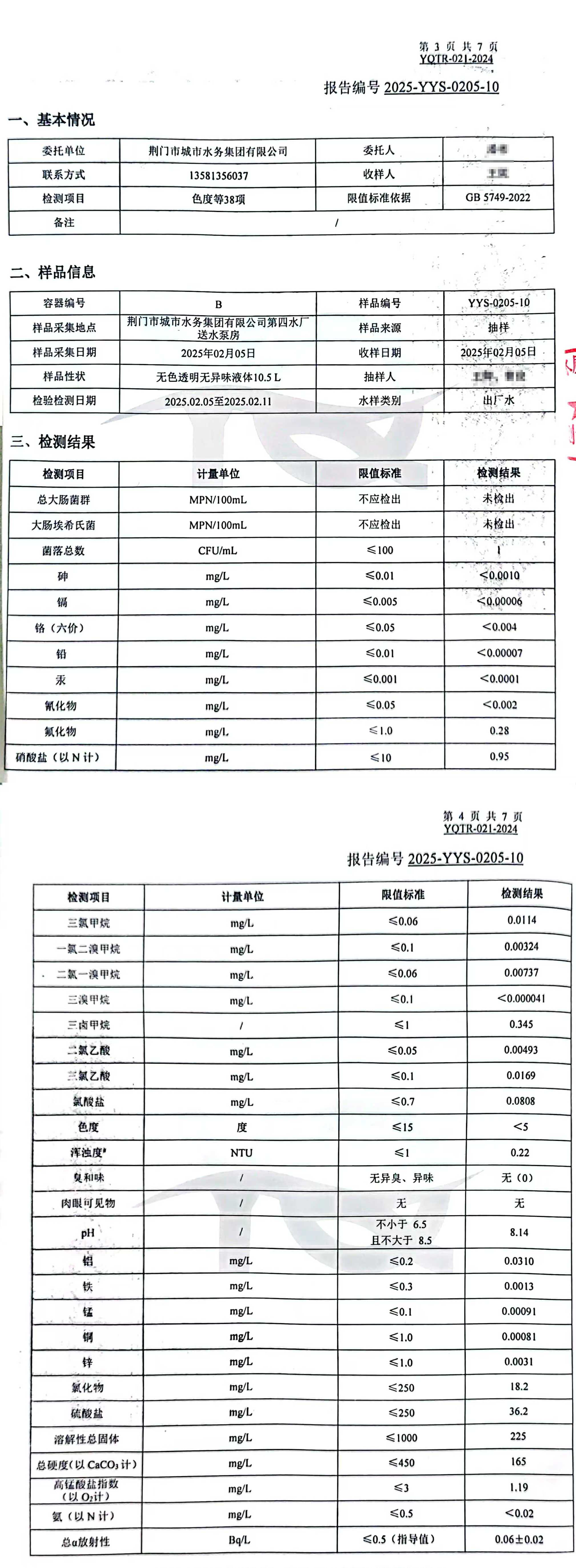 2025年2月,集團委托具有CMA認證資質(zhì)的第三方檢測機構(gòu),依據(jù)《生活飲用水衛(wèi)生標準》(GB5749-2022)對“四廠一站”出廠水、管網(wǎng)末梢水進行全分析檢測,水質(zhì)合格率100%。依據(jù)《地表水環(huán)境質(zhì)量標準(GB3838-2022)》檢測漳河原水,檢測結(jié)果為符合Ⅱ類標準。