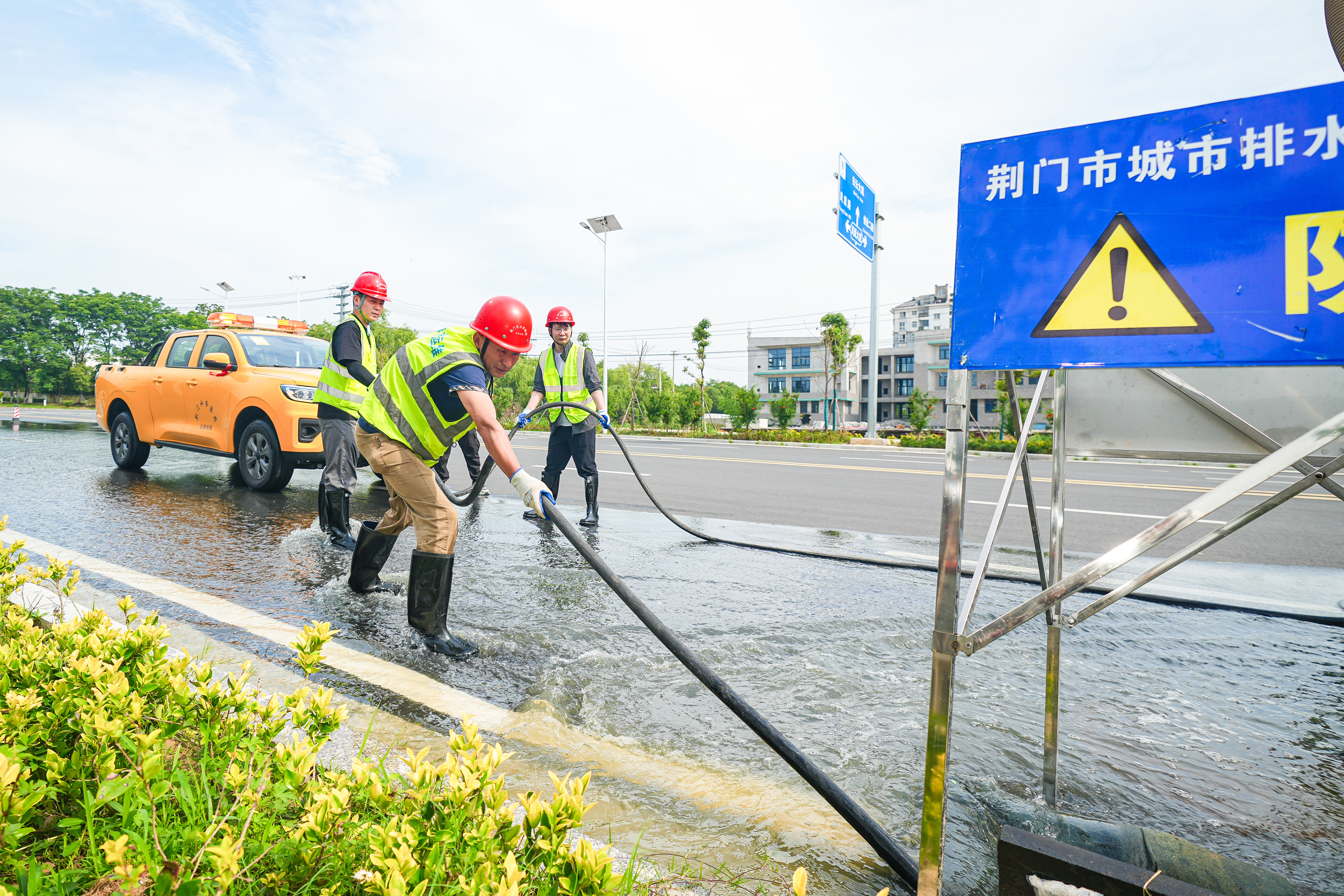 運用大功率移動泵車強排泵對道路積水位置進行抽排