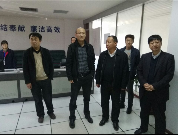 4月14日,省文明辦主任胡和平(前排右二)在市委常委、市委秘書長周友坤(右一)、市委宣傳部副部長、文明辦主任樊雁陪同下到公司指導(dǎo)創(chuàng)建全國文明單位工作,市供水總公司黨委書記、總經(jīng)理陳永根介紹相關(guān)情況。圖為在調(diào)度監(jiān)控中心視察時的情景。