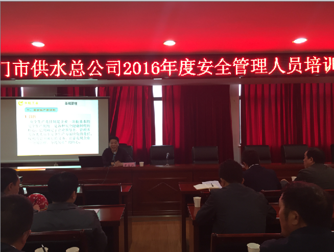 4月20日下午,市供水總公司聘請市安監(jiān)局專家?guī)鞂<?、注冊安全工程師胡在洲老師,對全公司安全管理人員、安全監(jiān)督檢查人員、安全員50余人進(jìn)行安全教育培訓(xùn),規(guī)范安全管理工作和安全檢查工作,防止安全事故發(fā)生。
