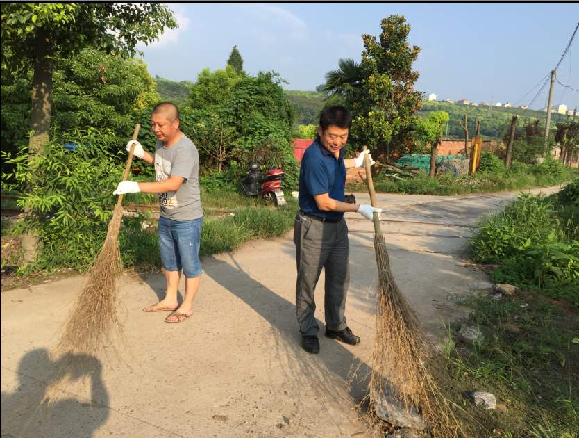8月13日,烈日炎炎,公司黨委副書記、紀(jì)委書記、工會(huì)主席徐黎明帶領(lǐng)辦公室、物業(yè)公司相關(guān)人員,利用周休時(shí)間,支持社區(qū)創(chuàng)衛(wèi)工作,對(duì)社區(qū)毛湖沖居民點(diǎn)道路進(jìn)行衛(wèi)生清掃,對(duì)陳年垃圾丟棄點(diǎn)進(jìn)行集中清理。圖為清掃現(xiàn)場(chǎng)。