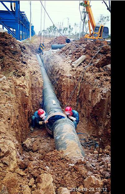 盈德氣體是荊門石化油品升級改造配套項(xiàng)目,是荊門市委、市政府重點(diǎn)招商引資項(xiàng)目,落戶于化工循環(huán)產(chǎn)業(yè)園。為服務(wù)好化工循環(huán)產(chǎn)業(yè)園,荊門市供水總公司19日接到鋪設(shè)盈德氣體專用DN600供水管道施工任務(wù)后,打破常規(guī),當(dāng)晚就安排人員、分解任務(wù);9月20日上午完成施工隊(duì)伍組織,工地測量、工程材料采購,下午立即進(jìn)場溝槽開挖。施工期間正逢207外環(huán)線與陽光大道部分路段封閉改造,公司積極與道路改造方協(xié)調(diào),利用每天道路施工間歇,將20根鋼管100根球墨管順利運(yùn)轉(zhuǎn)至工地。為了能在預(yù)定時(shí)間內(nèi)完成任務(wù),工人每天早晨5點(diǎn)半進(jìn)入施工現(xiàn)場,一直到晚上10點(diǎn)施工結(jié)束,中午不休息,早、中、晚三餐就在現(xiàn)場吃快餐。十天鋪通盈德氣體專用840米DN600供水管道。