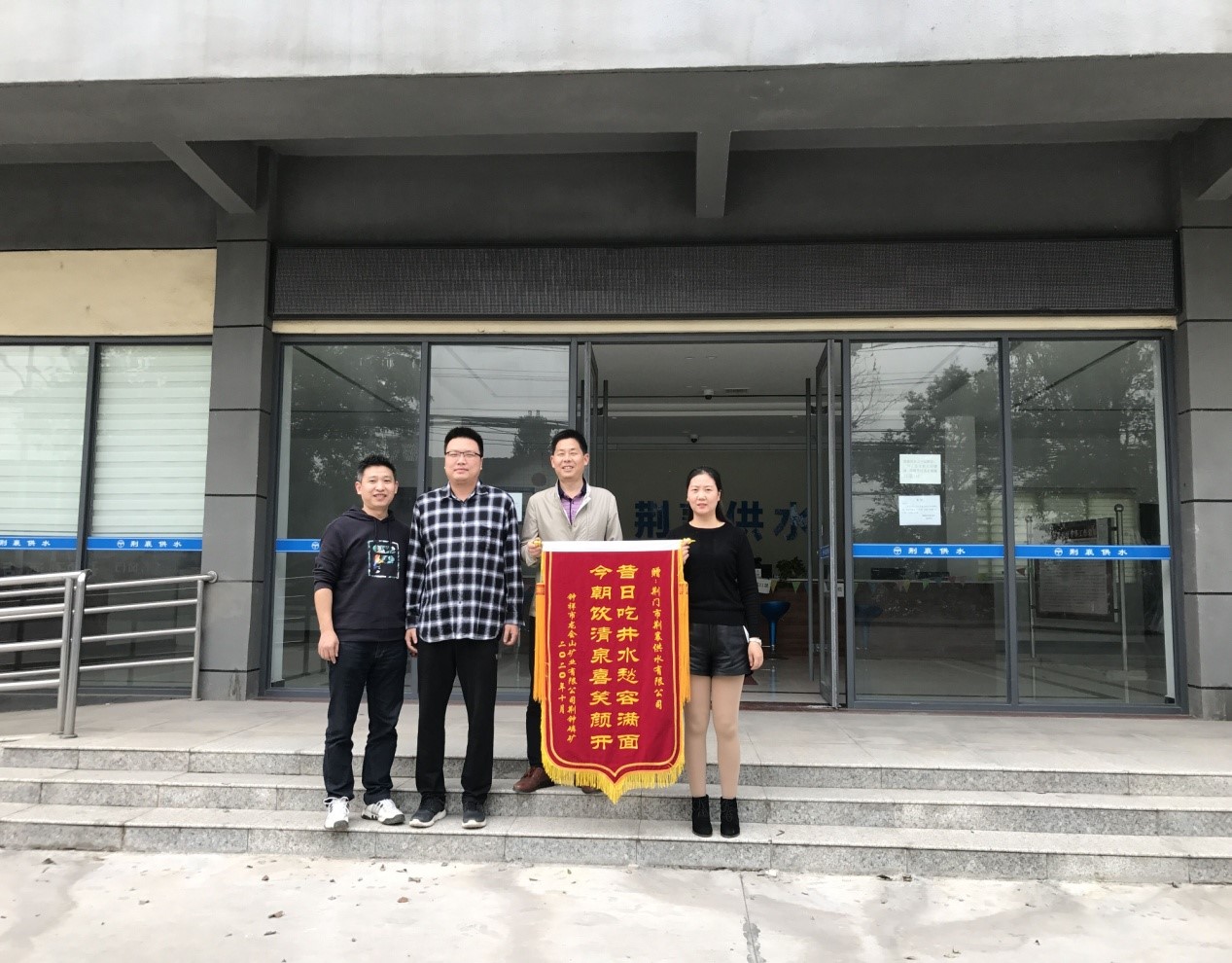 10月10日下午,鐘祥市龍會山礦業(yè)有限公司荊鐘磷礦礦長李綱專程來到荊襄供水公司,送來一面寫有“昔日吃井水愁容滿面 今朝飲清泉喜笑顏開”的錦旗,以表達對該公司為其高效開通自來水的謝意。