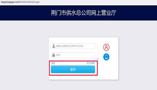 1.打開荊門市供水總公司網(wǎng)上營業(yè)廳,注冊賬號(已有賬號可以直接登錄),登錄網(wǎng)上營業(yè)廳。
