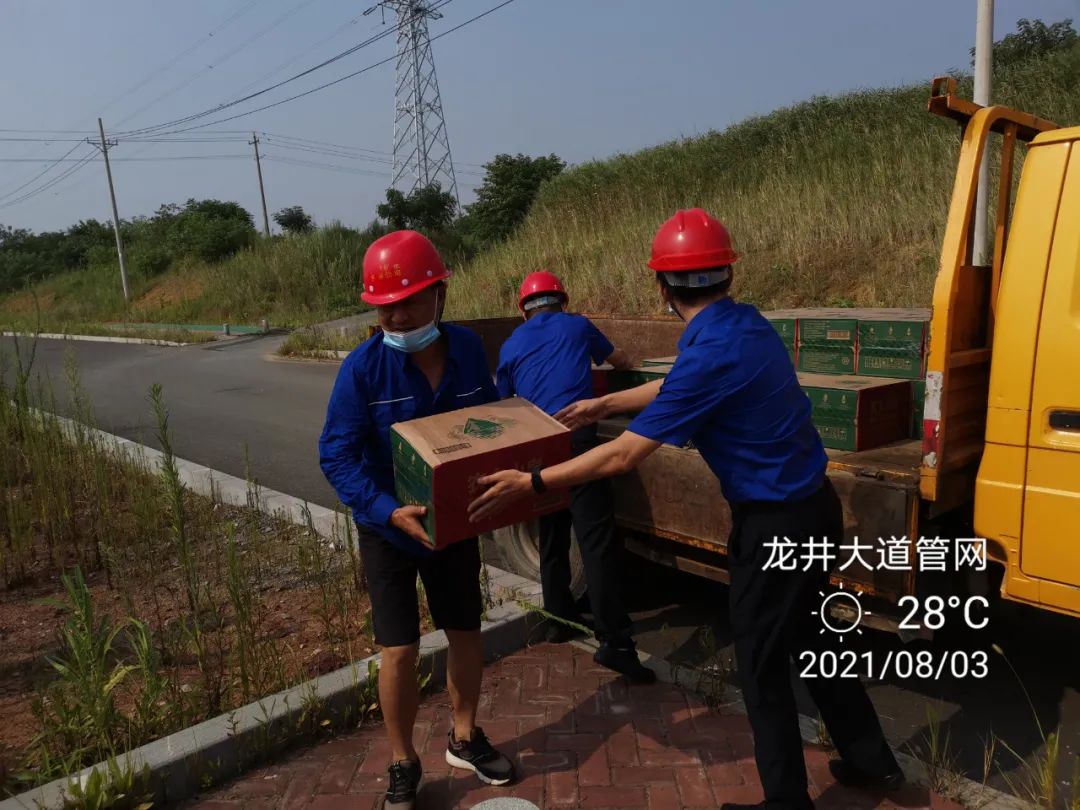 為保證工程順利完成,一線供水工人們在酷暑中堅持正常生產(chǎn),為了防止燙傷,長袖長褲是他們每個人的“標配”。此次活動,給汗流浹背的工人們送來了一塊甜甜的西瓜、一瓶愛心水、一聲“辛苦了”,正是因為你們的汗水,保障了供水管網(wǎng)的平穩(wěn),才換來千家萬戶清涼的自來水!