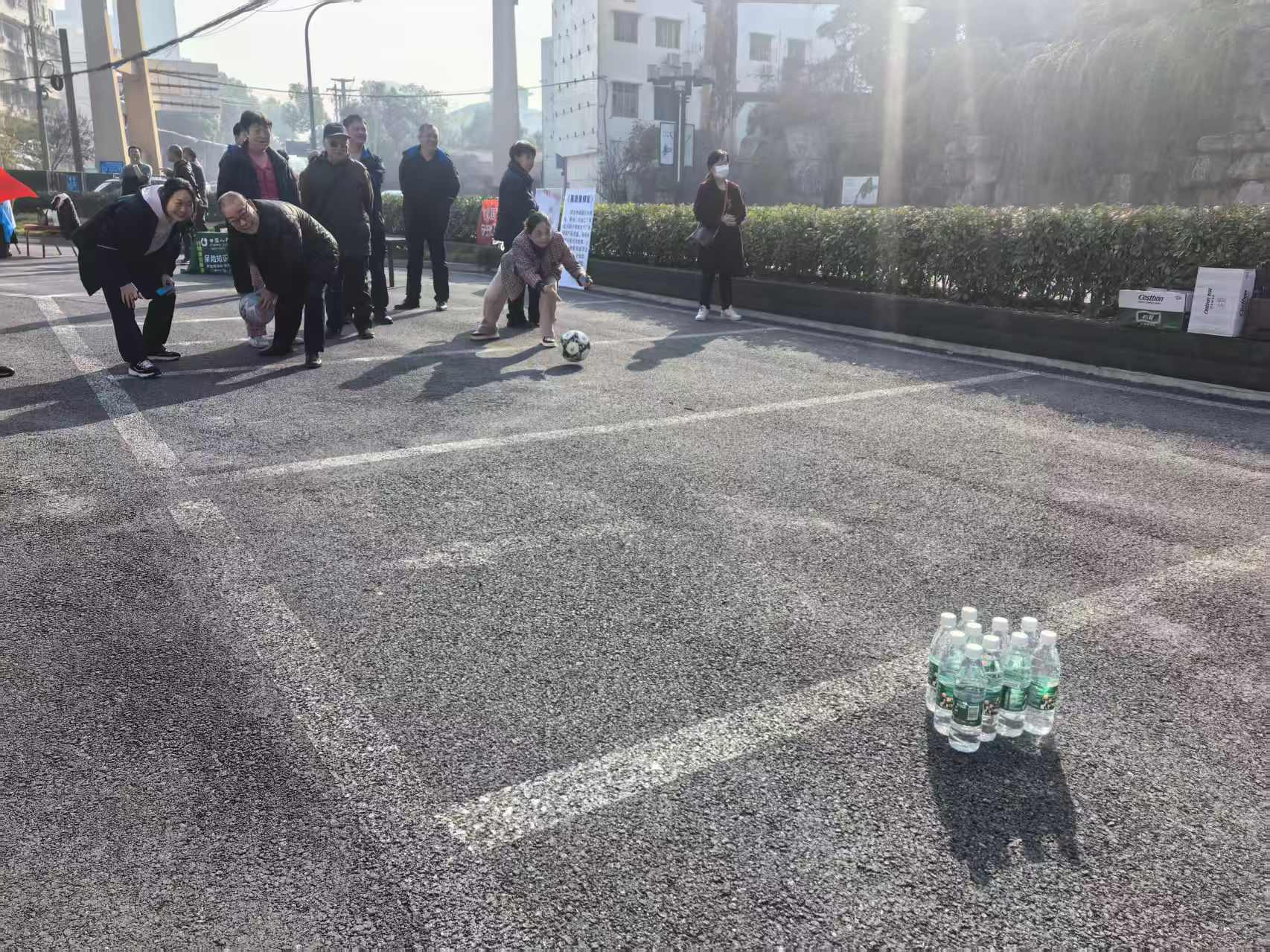 趣味保齡球項目中,老人們瞄準塑料瓶陣滾球,擊倒瓶子時的歡呼聲此起彼伏;歡樂套圈前,大家瞄準蔬菜、油鹽醬醋等生活物資投擲,有人接連套中獎品,開心得像個孩子;球拍托球健步走環(huán)節(jié),老人們小心翼翼托球前行,現(xiàn)場滿是歡聲笑語。